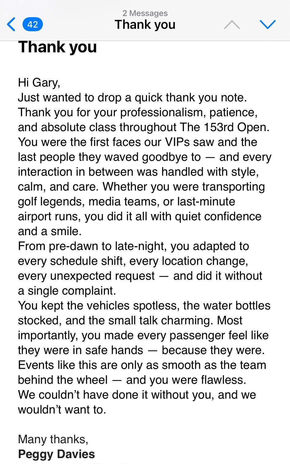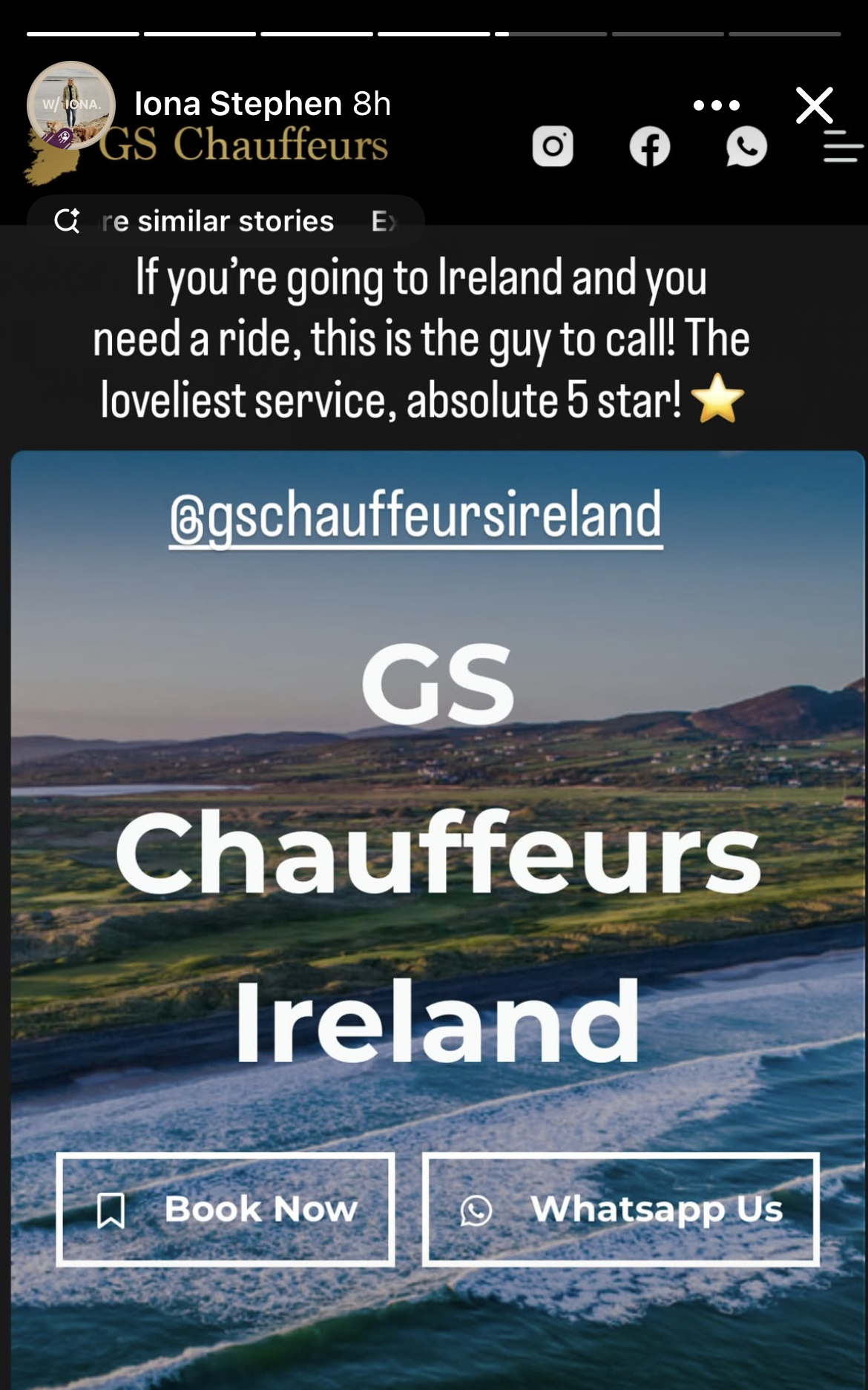 A lady recently sent us this great testimonial her experience with GS Chauffeurs Ireland.